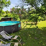 Grosszuegige Ferienwohnung Nahe Berlin ferielejlighed ligger omkring 4 km fra Burgwall Riewend og byder på udsigt over haven. Lejlighed består af 2 soveværelser, 2 badeværelser og også et fuldt udstyret køkken.